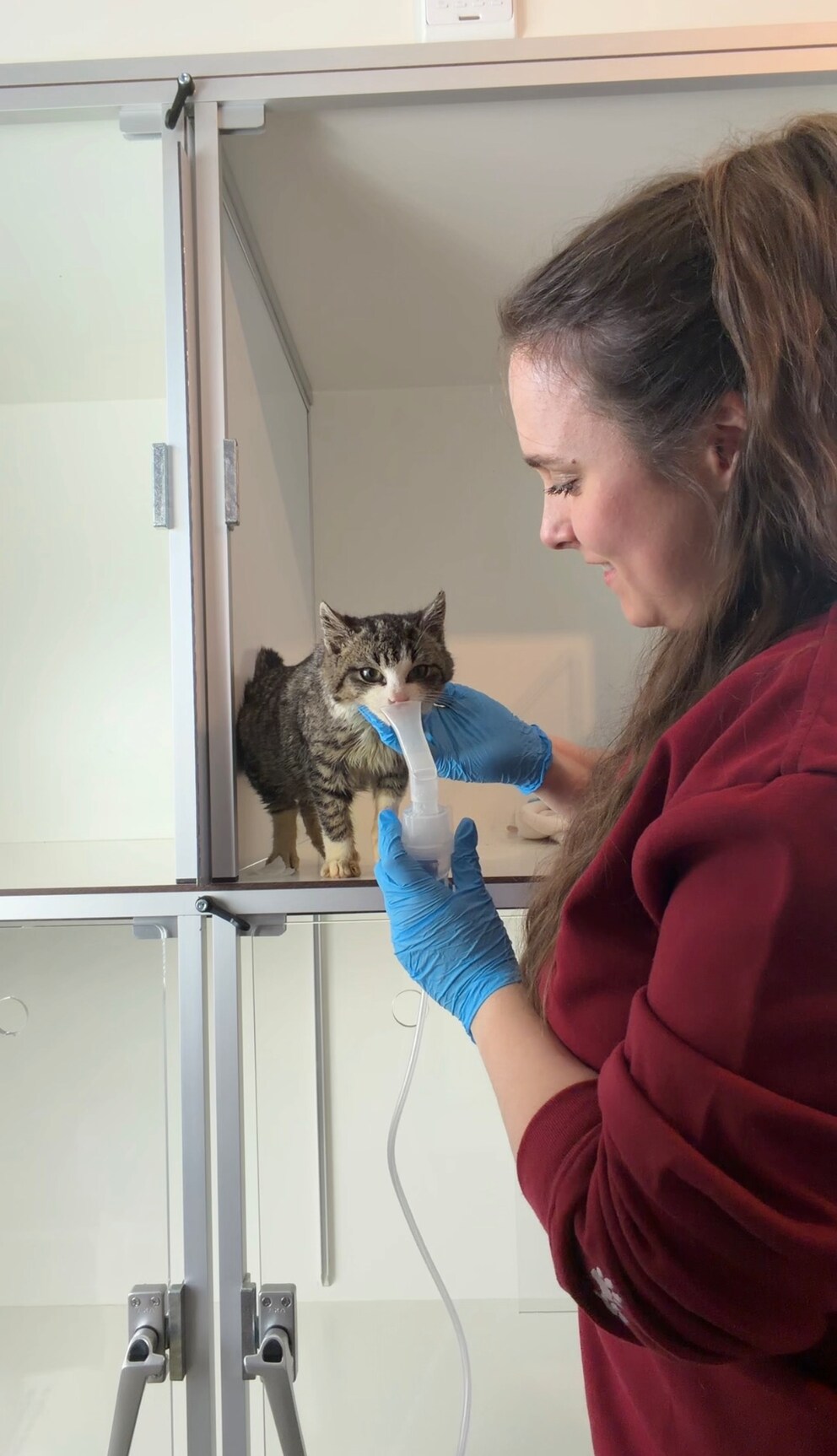“Nowadays, every evening, usually for about an hour and a half. Just the inhalation takes about 20 minutes. But it’s not just about the treatment–we also take time to cuddle and talk.
